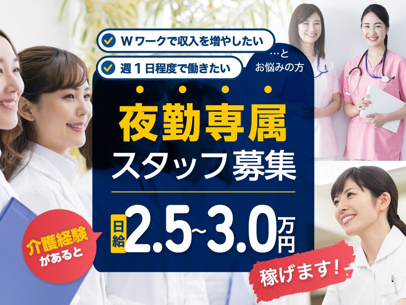 - ・夜勤専門介護業務 ・身体に障害のある方や認知症状のある方の介護業務